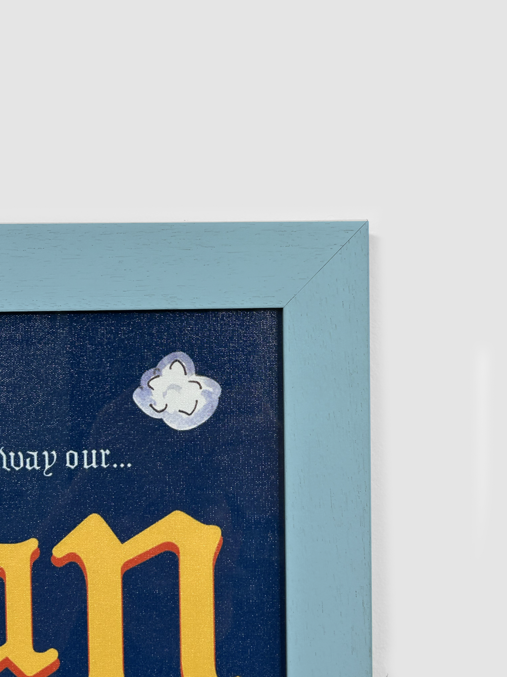 Iron Man canvas poster circa 2006, under glass in a chunky lifeguard tower inspired frame complete with stencil.