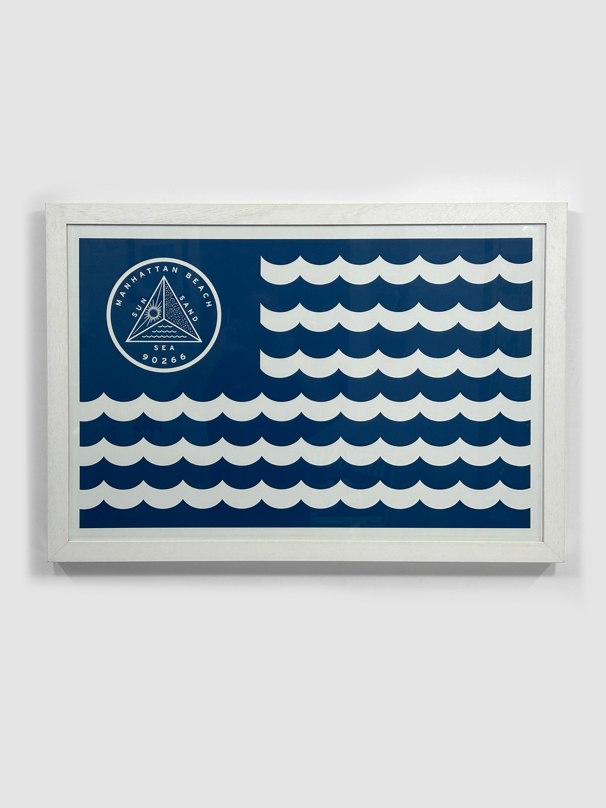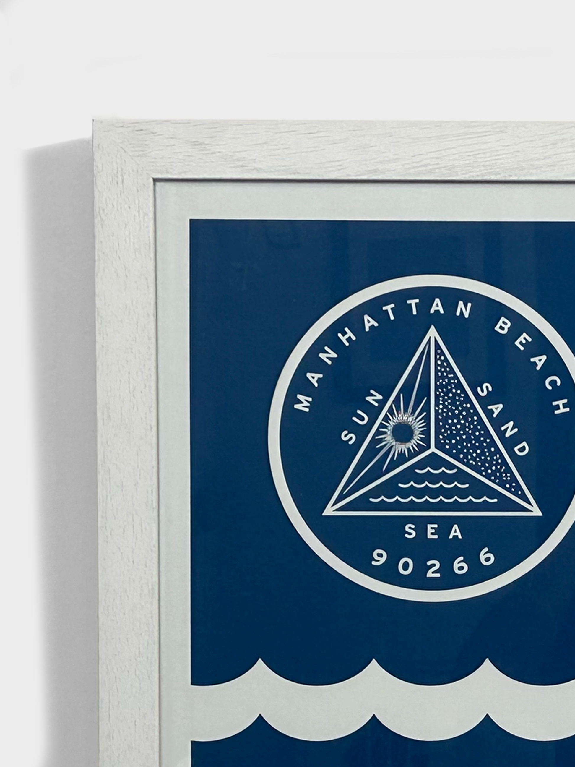 A high quality print on canvas in a chunky white wood grain frame.
