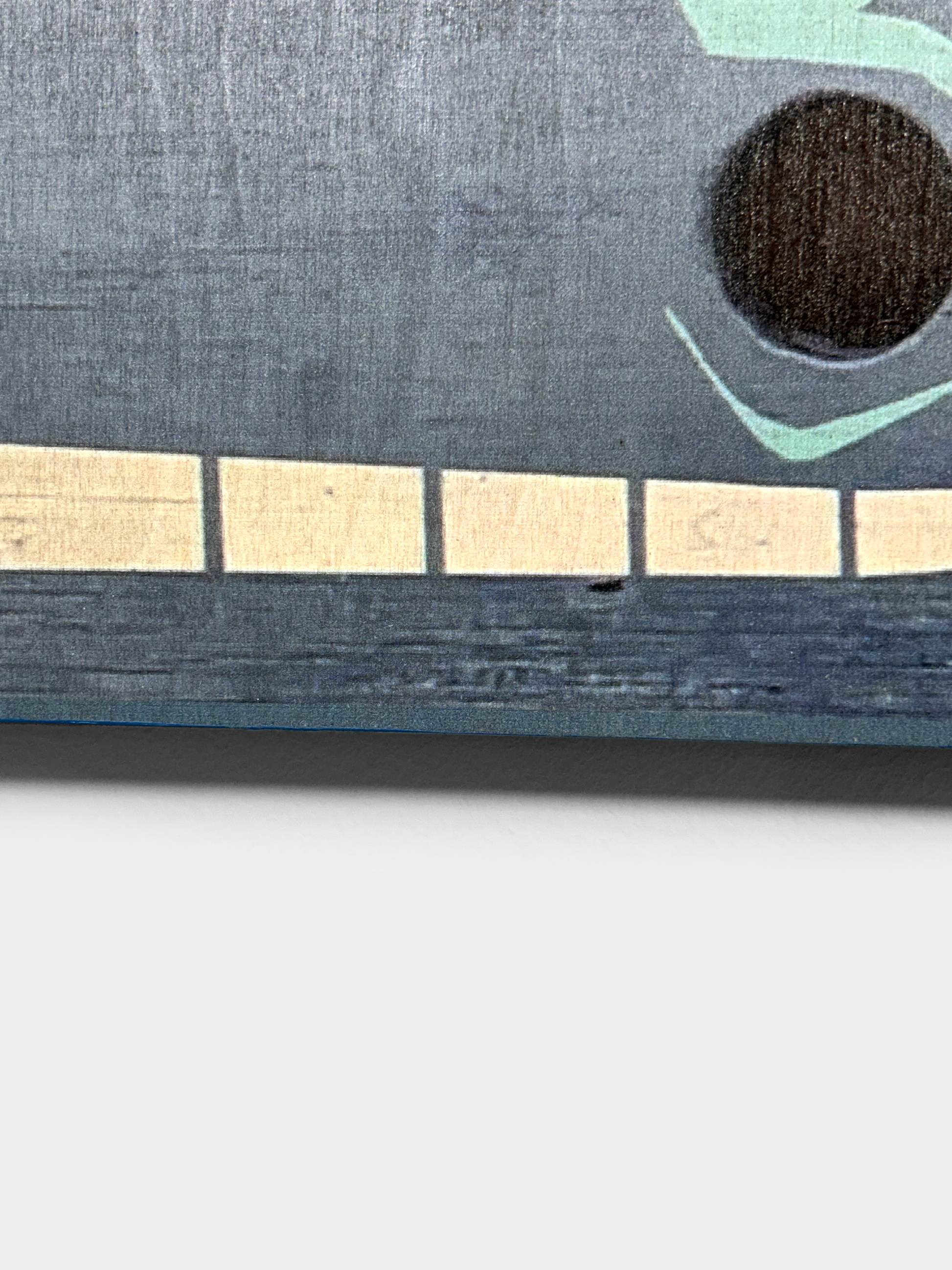 Back in the Day this piece that they called "Shelley" was on the backs of every lifeguard tower in Los Angeles County. This is a replica the one that a retired Lifeguard acquired when they took them down years ago. Check out the earth day logo on Shelley's tale.